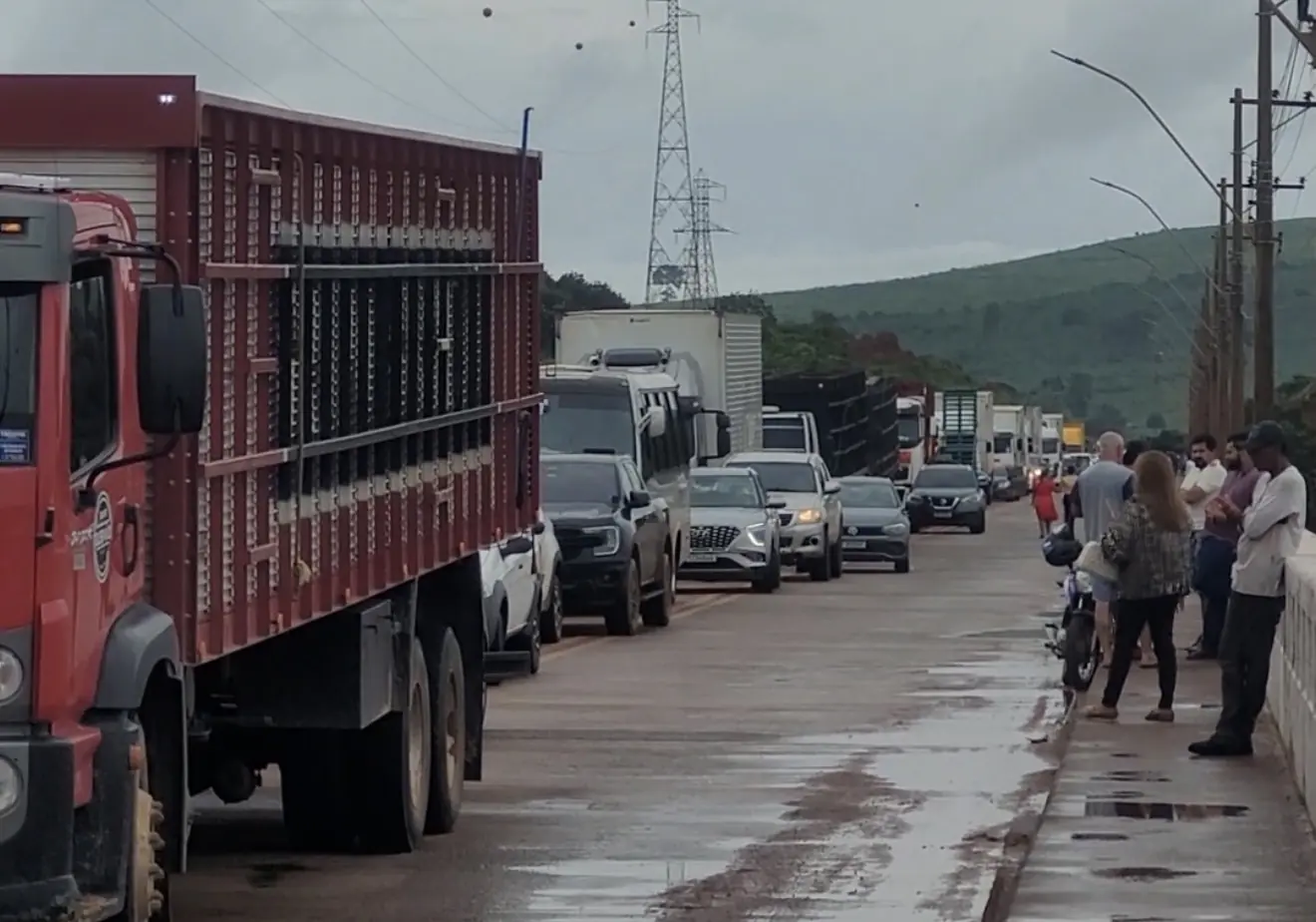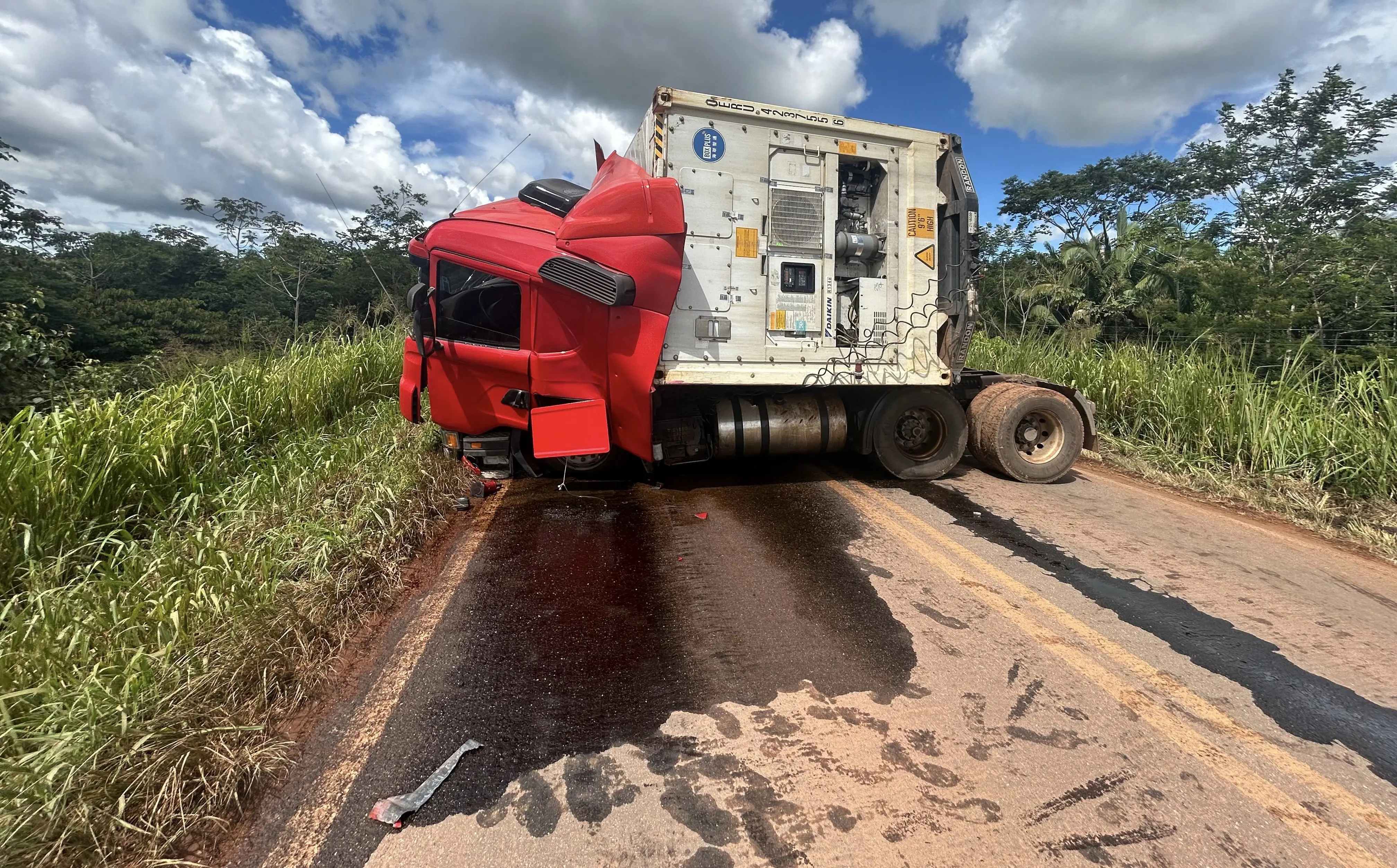 Caminhão frigorífico tomba na BR-155 e interdita rodovia em Xinguara