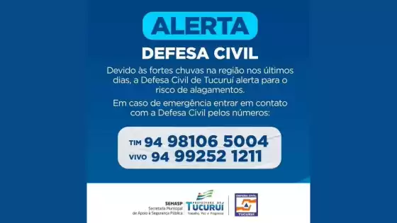 Defesa Civil em Tucuruí emiti alerta e divulga número para contato caso necessite...