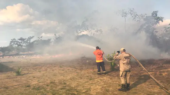 Incêndio próximo ao residencial Viva Cidade queimou o mato e chegou perto das res...