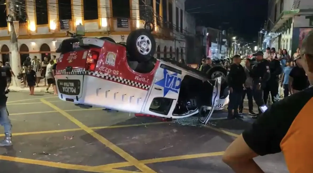 VIATURA DA PM CAPOTA APÓS SER ATINGIDA POR CARRO NA DOCA DE SOUZA FRANCO, EM BELÉ...